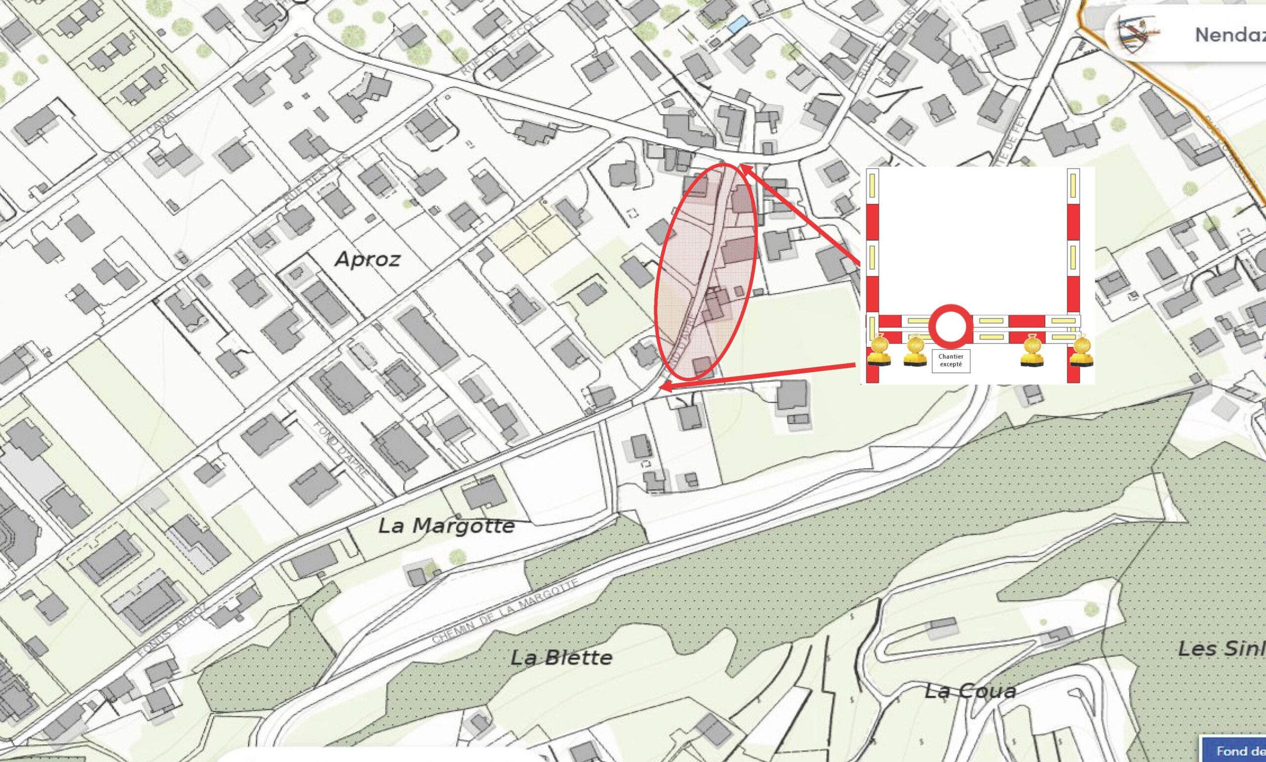 En raison de travaux de réfection de la chaussée et des canalisations, la route de Fond d’Apre à Aproz est fermée à toute circulation du lundi 2 février au vendredi 27 mars 2026*.