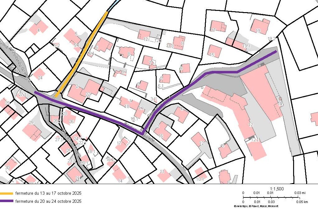 En raison de la pose de l’enrobé bitumineux, les routes communales suivantes seront fermées à la circulation selon le plan ci-contre :